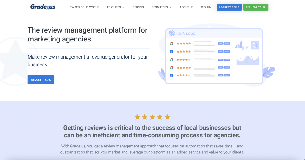 Grade.us is built with agencies in mind and offers robust automation and white-labeling options for review campaigns.