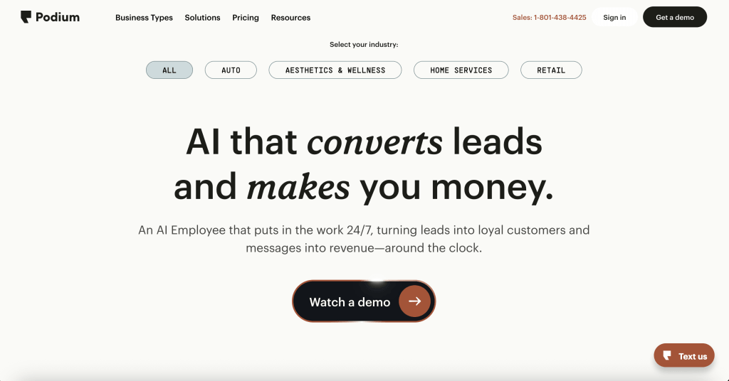Podium focuses heavily on messaging and communication, making it valuable for service businesses that rely on fast customer interaction.